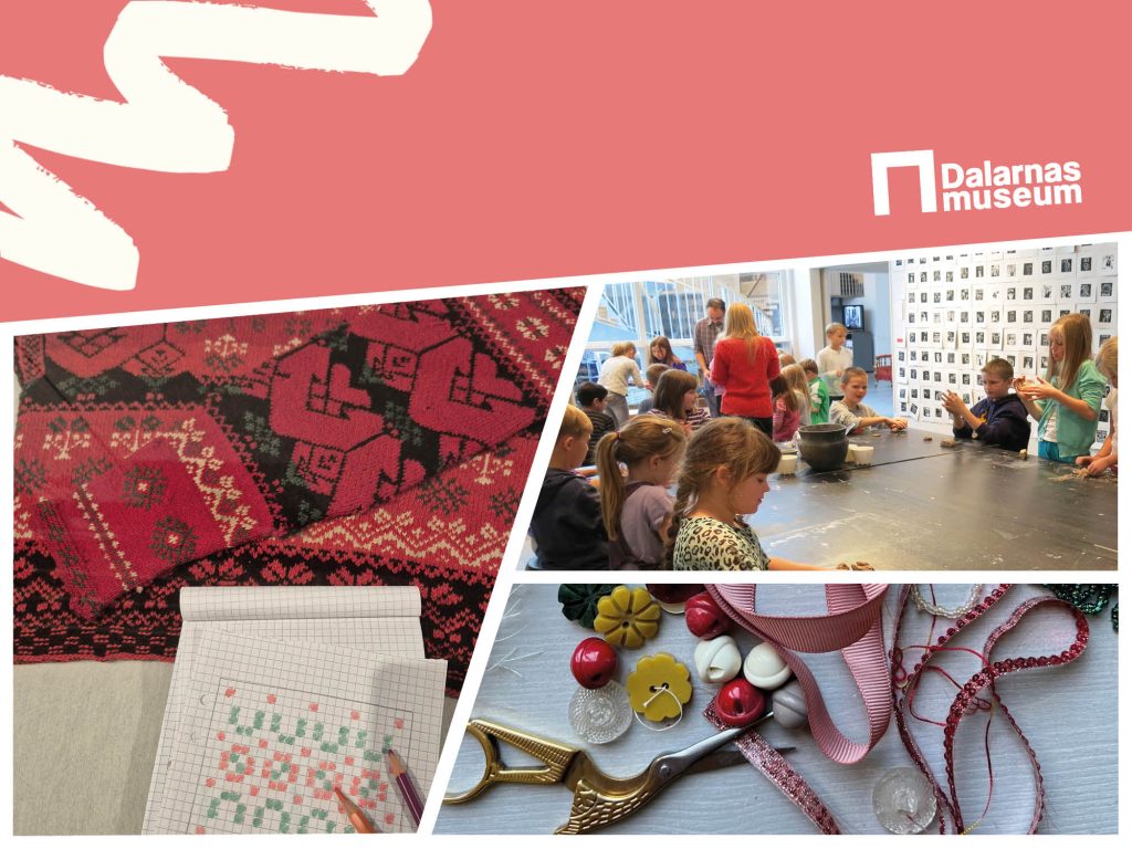 Workshopen inleds med en kortare visning i Dalarnas museums utställning ”Klädd i Dalarna” där vi samlar inspiration för att sedan slå oss ner i skaparverkstaden.
